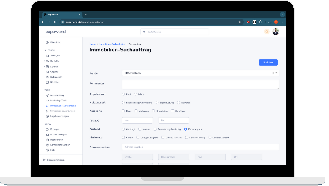 Suchauftrag mit Kundenprofil